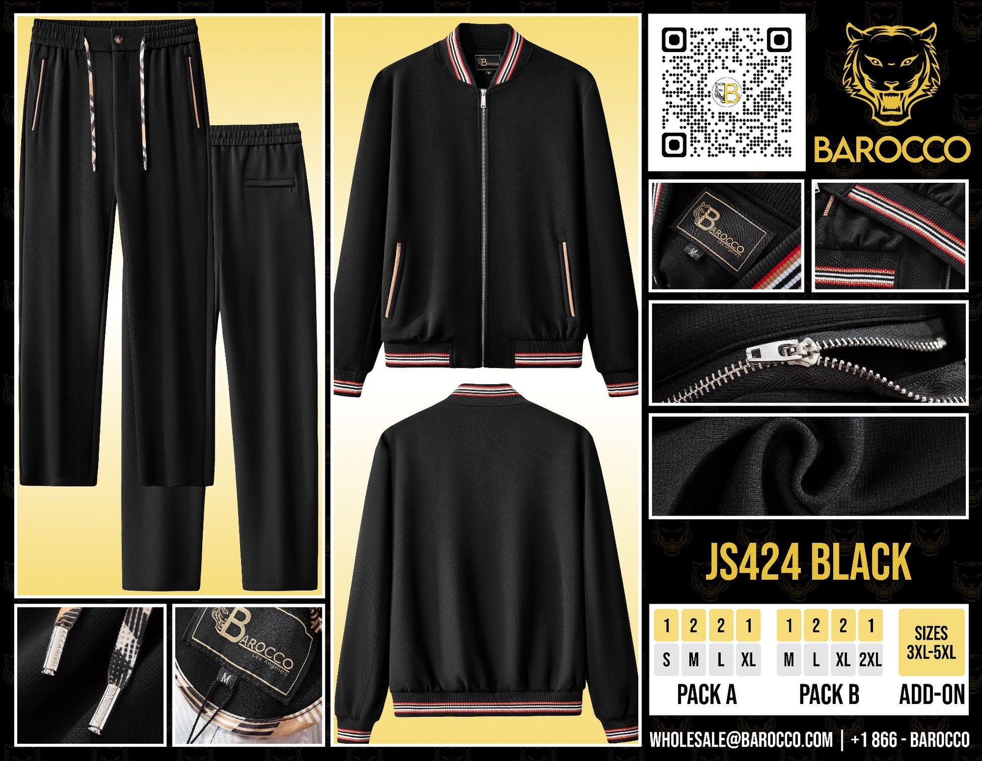 The Stratus Trim Tracksuit blends sporty refinement with Barocco’s signature elevated detailing. Bold contrast ribbing at the collar, cuffs, and hem introduces a modern athletic edge, while the smooth hand-feel and structured drape deliver a polished finish. Subtle accent trim on the pockets and patterned drawcords add a touch of distinction, creating a versatile set ideal for upscale casual wear, travel, or everyday statement looks.