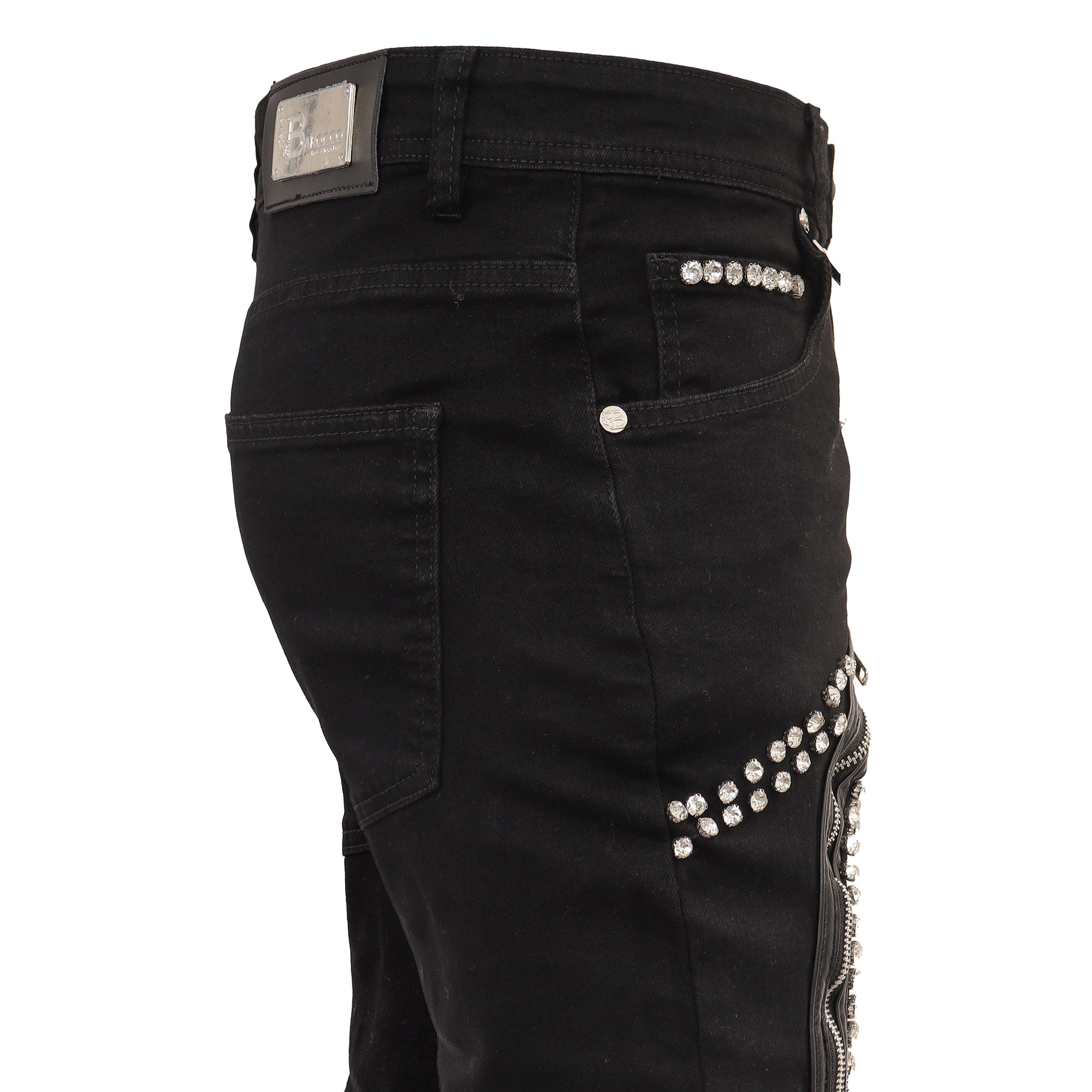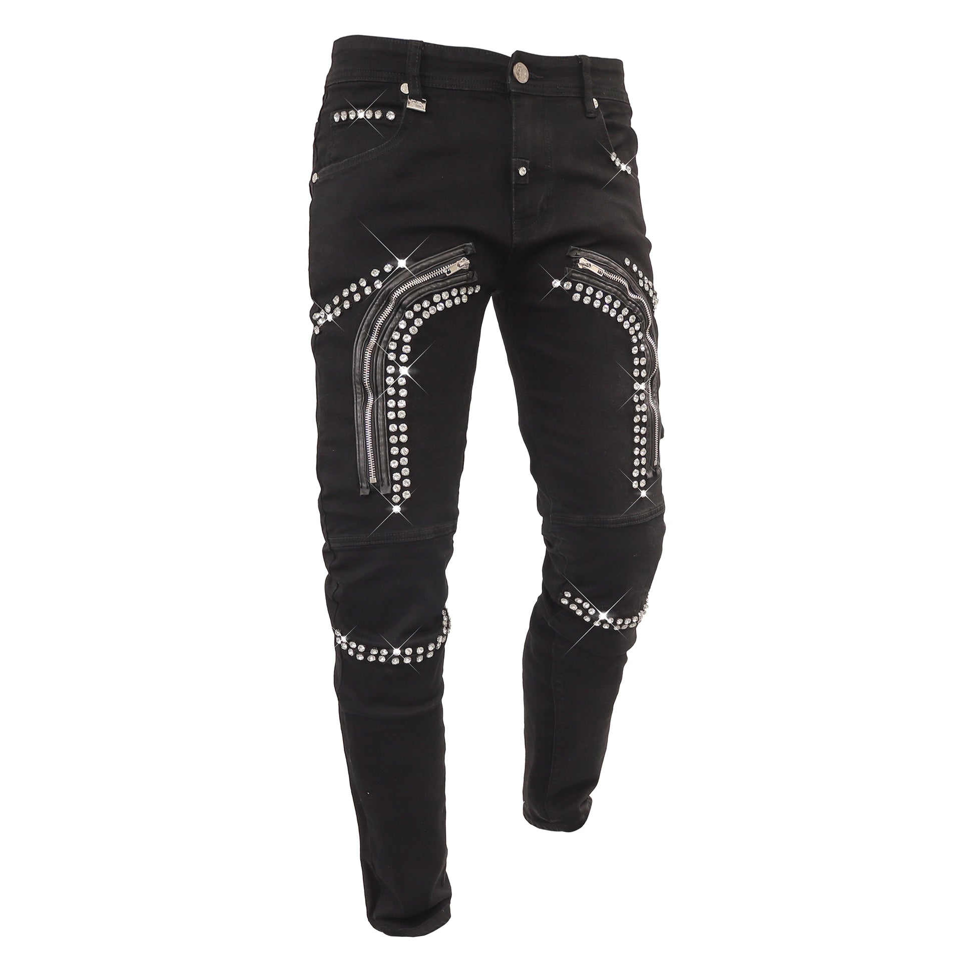 Step into the spotlight with the ECHOS OF YOU denim pants, where elegance meets edgy streetwear. Designed for the modern man, these skinny-fit jeans feature stunning rhinestone embellishments that shimmer with every movement, making them ideal for both dressy casual occasions and standout red carpet events. Crafted from high-quality denim, these pants offer exceptional stretch for a tailored fit that flatters your silhouette while allowing unrestricted movement. The bold zipper detailing running from the thighs to the knees enhances the overall aesthetic with an urban flair. Whether you're hitting the runway or preparing for a performance as a singer or artist, the ECHOS OF YOU denim pants make a statement. Pair them with a sleek button-up or stylish blazer for a polished look that effortlessly transitions from day to night. Elevate your wardrobe with these embellished denim pants—an essential piece for any fashion-forward individual.