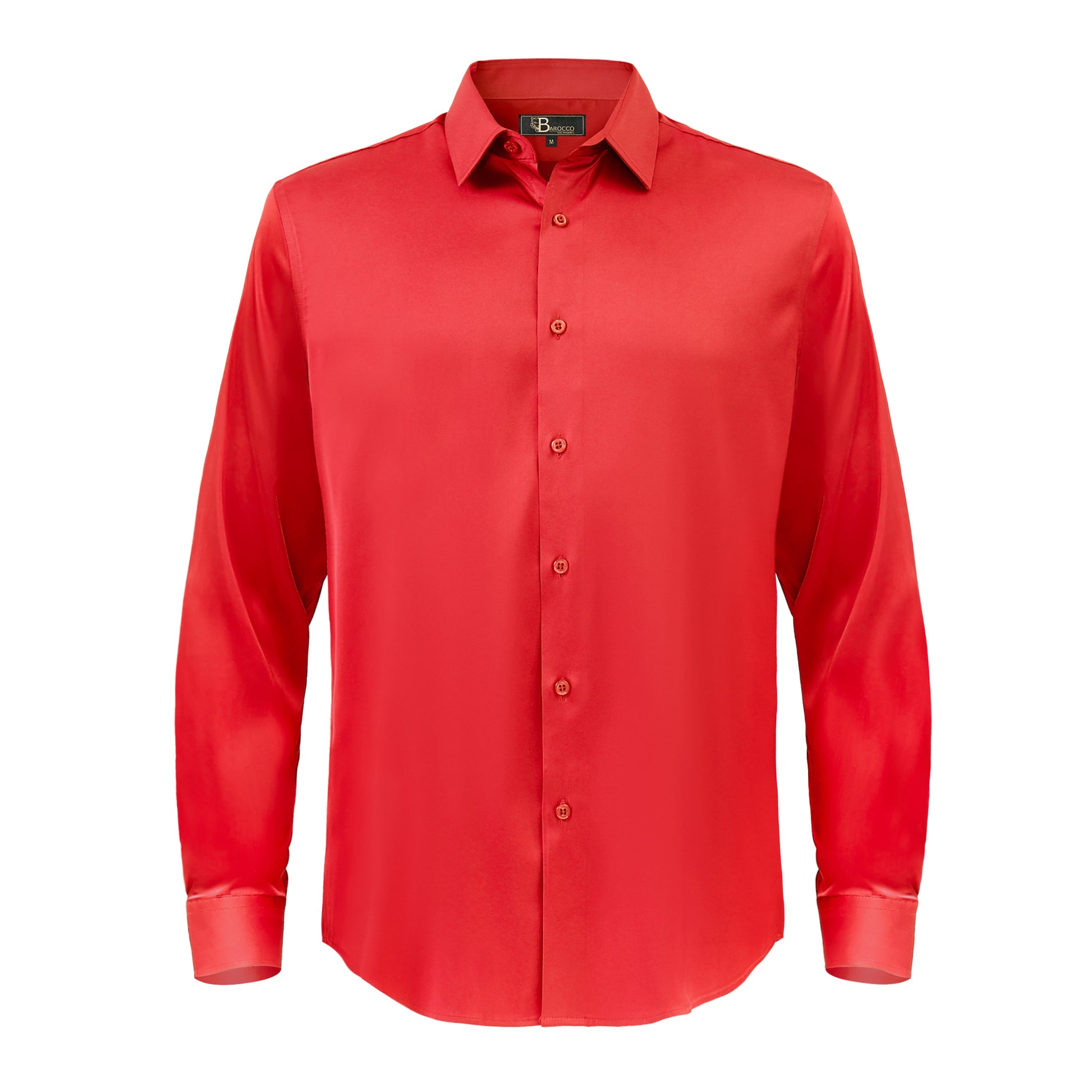 3. Barocco Luxe Satin Stretch Shirt-RED