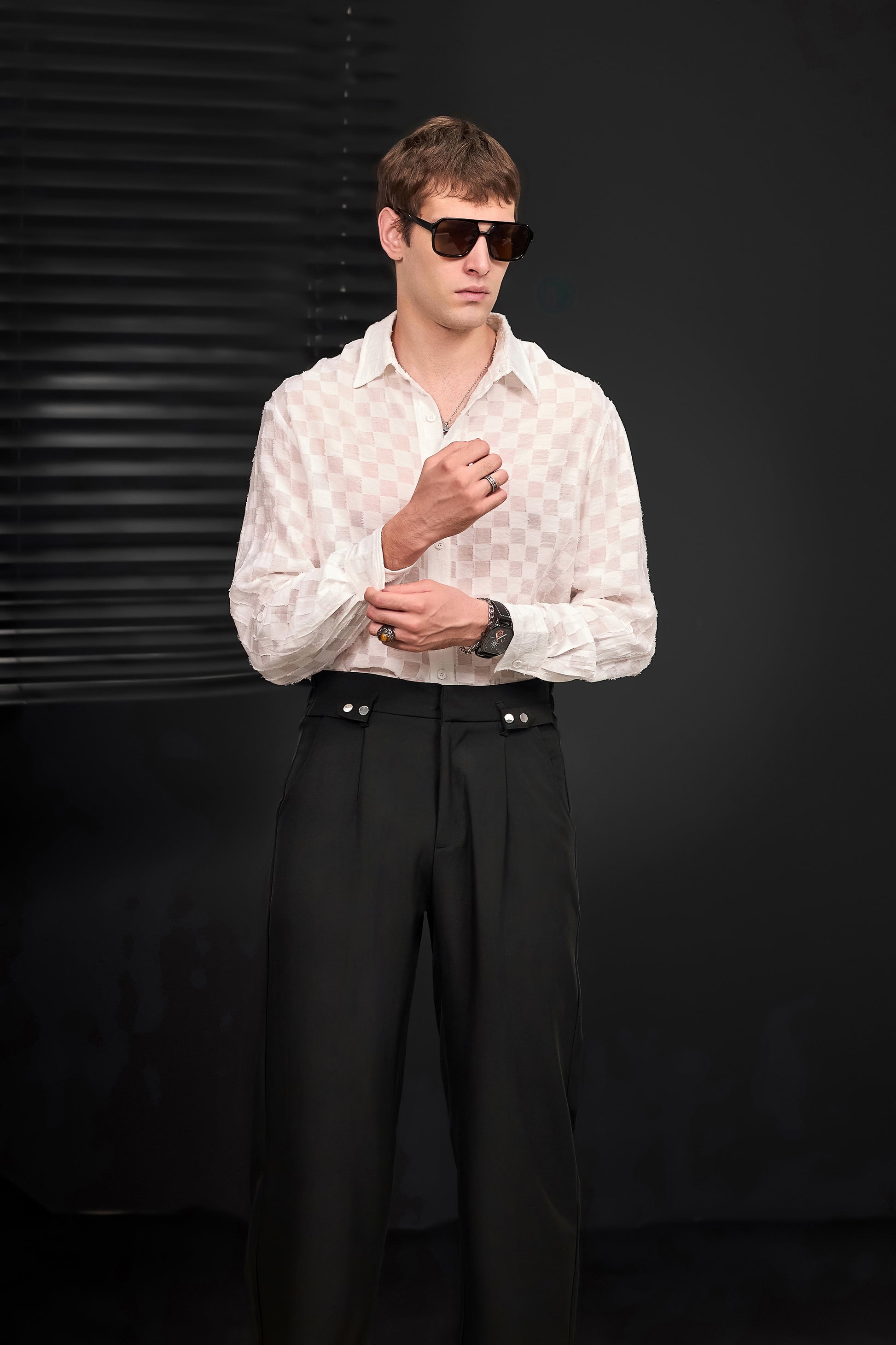 Subtle complexity defines the Haven Shirt, crafted in a lightweight, breathable fabric with a dimensional check texture throughout. Cut in a classic long sleeve silhouette with a soft drape, it blends refined tailoring with tactile richness. Finished with tonal buttons and a relaxed fit, it offers understated character perfect for elevated casual dressing.