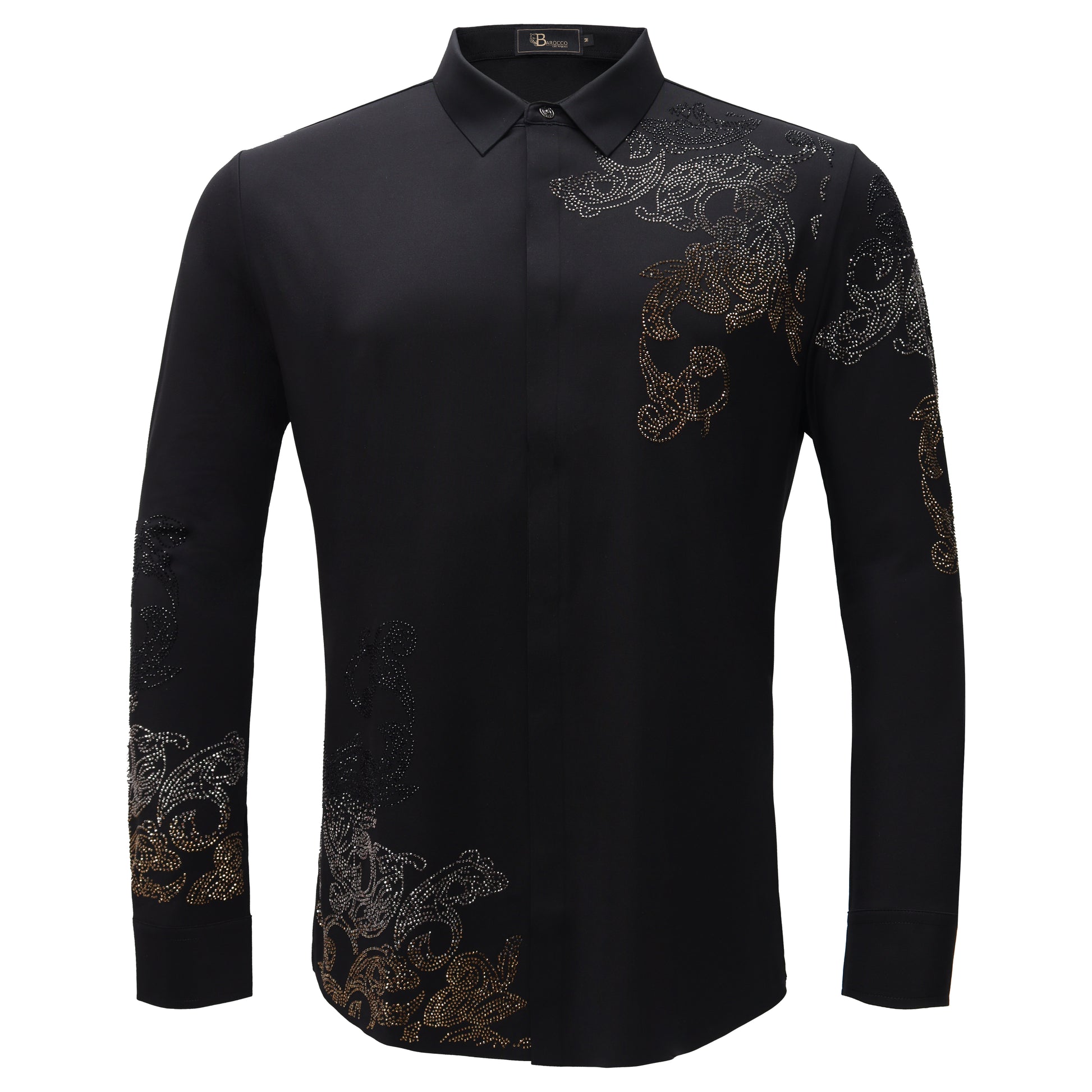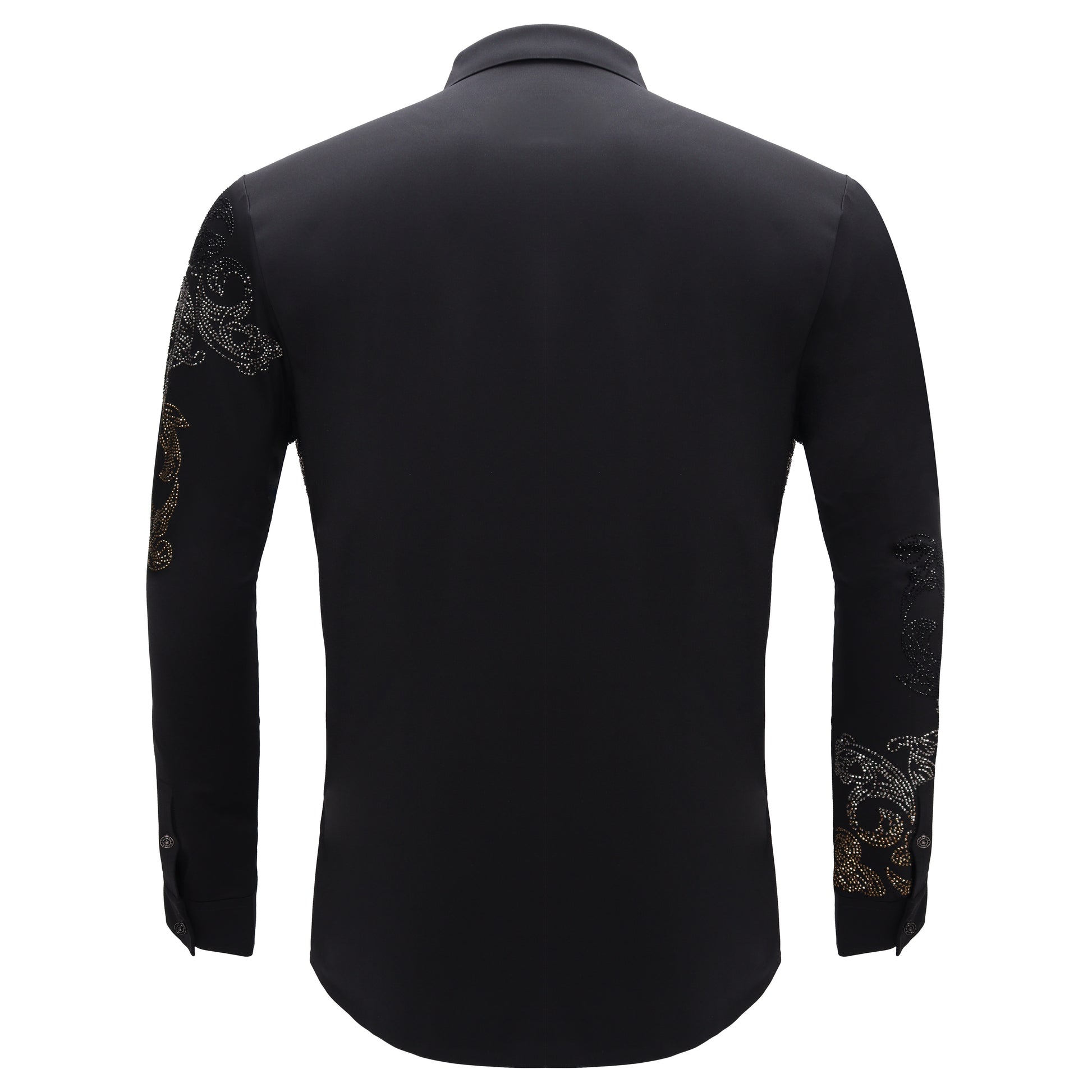 3. Floral Crystal Shirt-BLACK/GUN GOLD