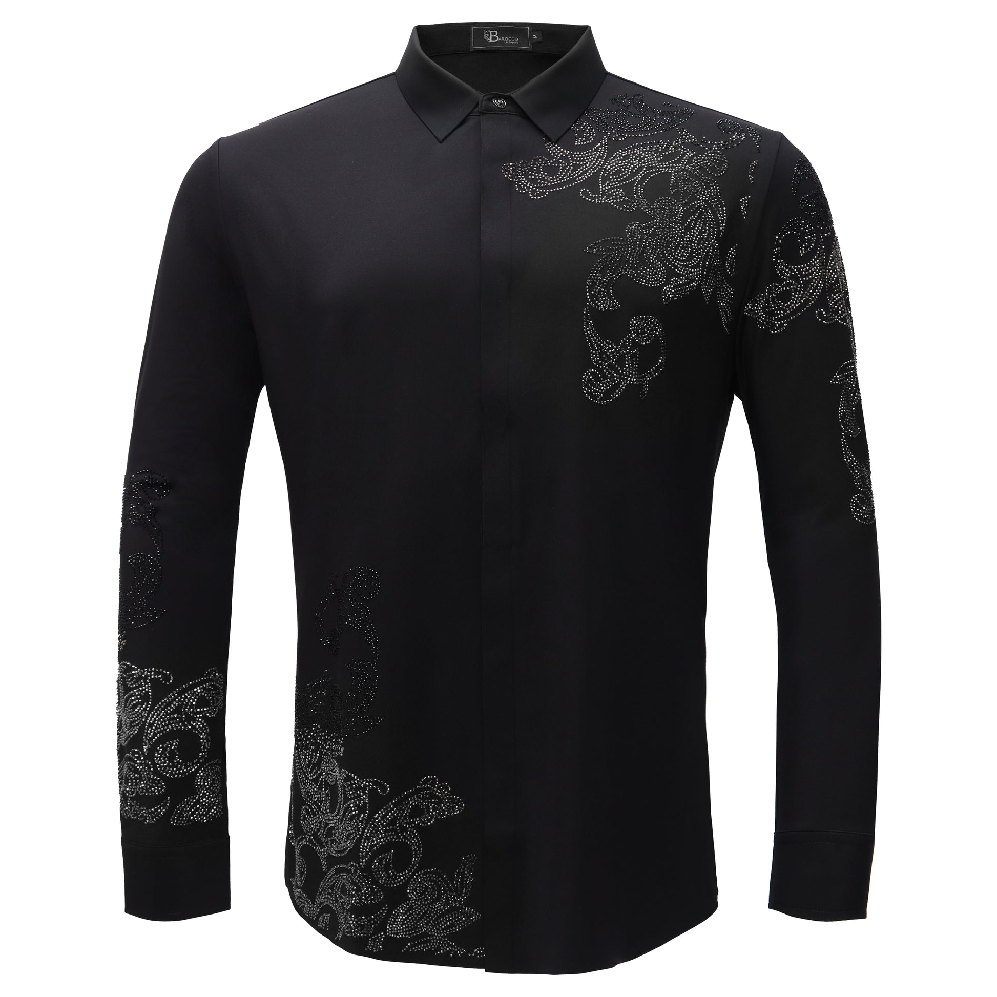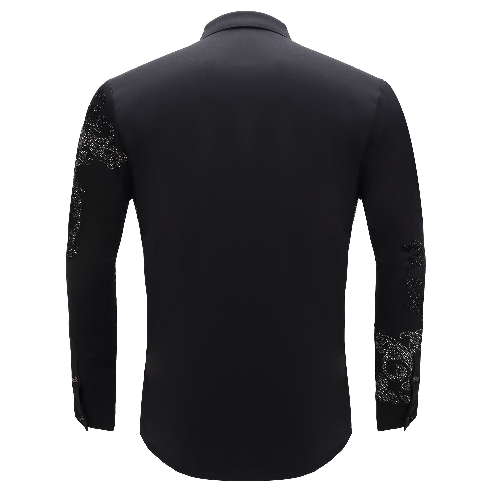3. Floral Crystal Shirt-BLACK/GUN SILVER