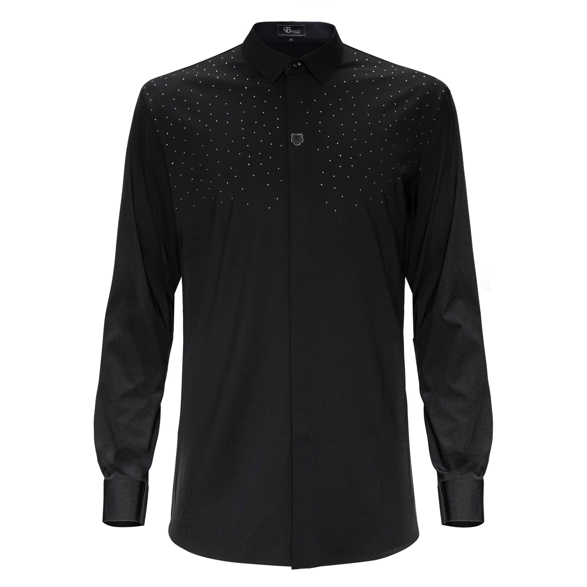 Introducing the 'Thrill Seeker' Button-Up Shirt—where modern masculinity meets adventurous style. This shirt is engineered for the bold, featuring superior stretch and extra comfort that empowers you to move with confidence. Crafted with cutting-edge stitchless technology, it delivers a refined look while eliminating discomfort from seams. With breathable fabric and 4-way stretch, the 'Thrill Seeker' adapts seamlessly to your body, ensuring you stay comfortable whether you're exploring the city or attending a night out. The eye-catching rhinestone details on the chest bring an element of glam, making sure all eyes are on you. Adorned with the Barocco signature tiger, this shirt exudes power and charisma—ideal for the man who embraces thrill and excitement at every turn. Make the 'Thrill Seeker' your go-to piece for a striking, confident presence.