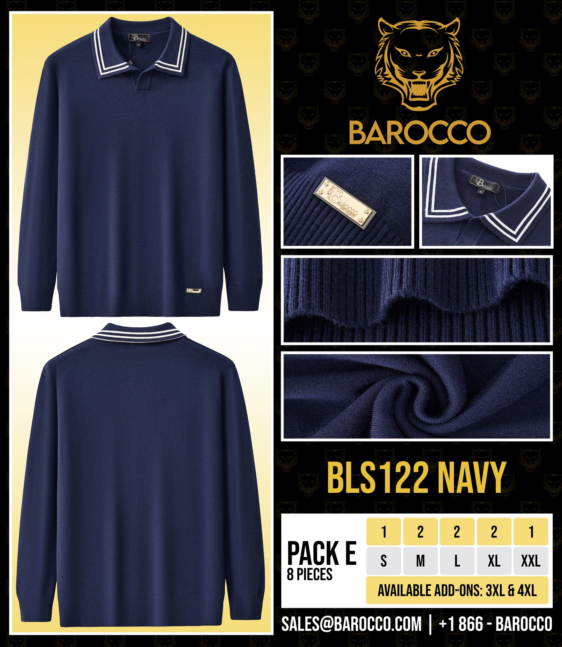 Description:The Monarch Tipped Collar Knit Polo LS defines understated luxury with a tailored edge. Crafted from a smooth viscose-blend knit, it features a contrast double-tipped collar that elevates the classic polo silhouette. Lightweight and refined with a soft drape, it embodies Barocco’s timeless blend of sophistication and modern versatility.