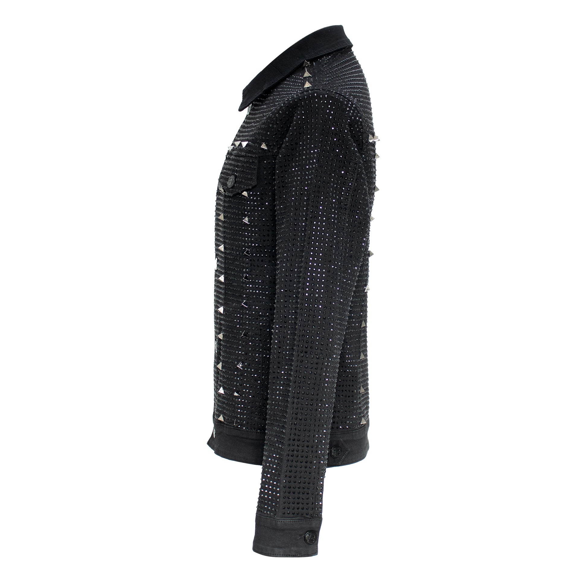 “Unleash your inner star with the Opulent Overlay Denim Jacket, the epitome of glamour and style. This statement piece is meticulously adorned with shimmering crystals and dazzling bling that cascade across the entire jacket, ensuring you stand out on any red carpet event. Designed with the modern singer and artist in mind, this jacket combines high-fashion elements with everyday comfort, making it a perfect choice for runway shows or casual outings. The studs on the collar, shoulders, and down the body add an edgy flair, elevating the overall aesthetic to new heights.”