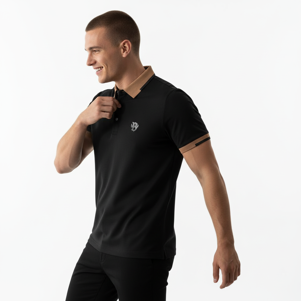 Contrast Trim Performance Polo - El Baron-BLACK