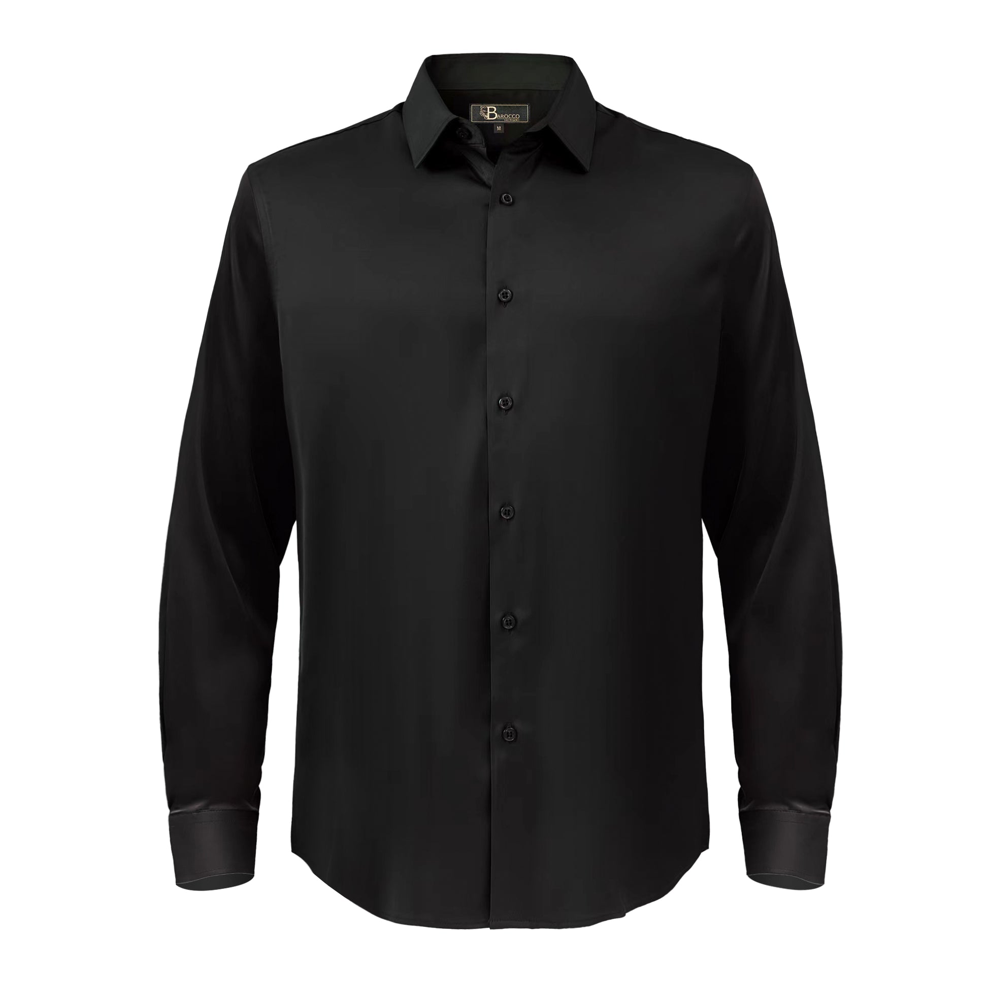 3. Barocco Luxe Satin Stretch Shirt-BLACK