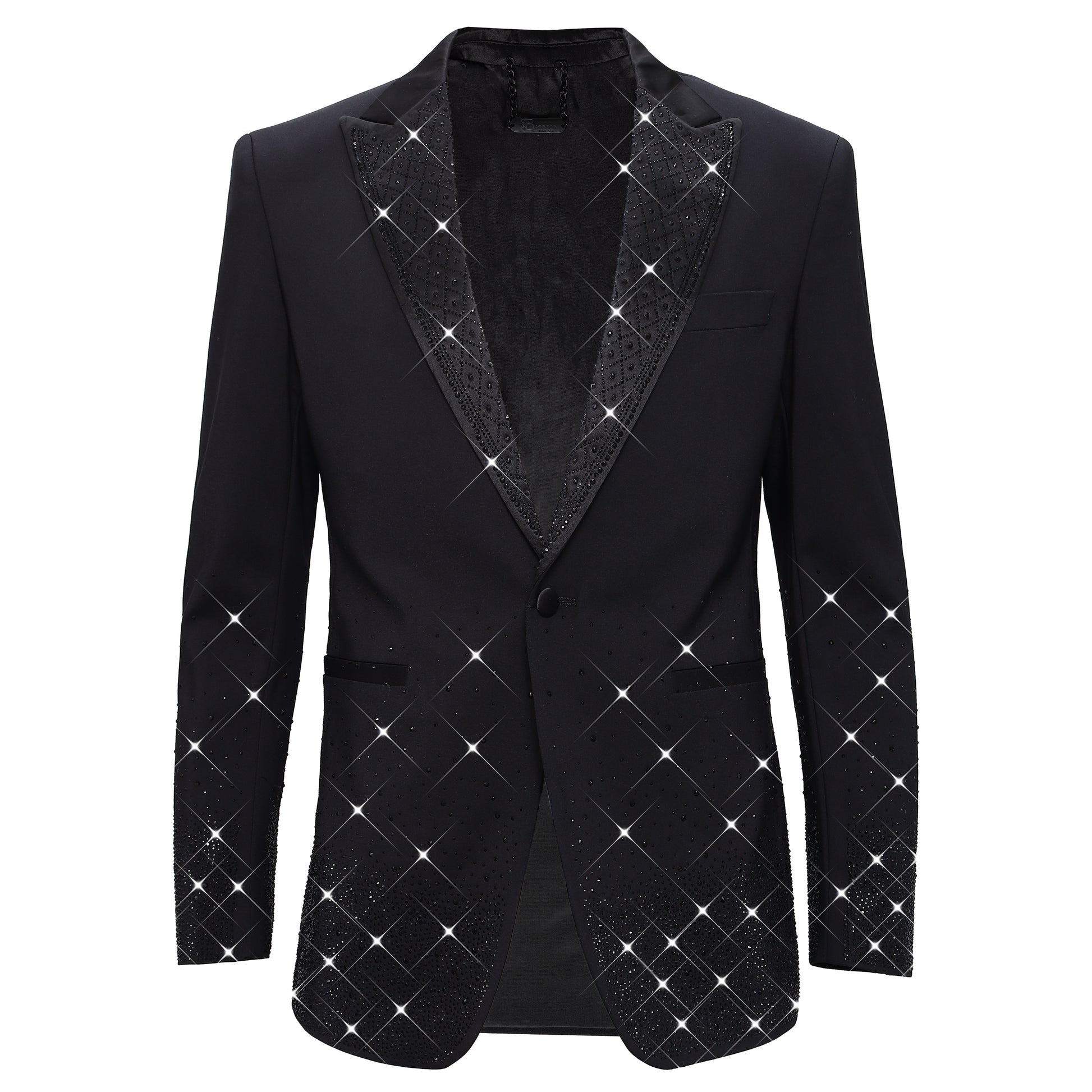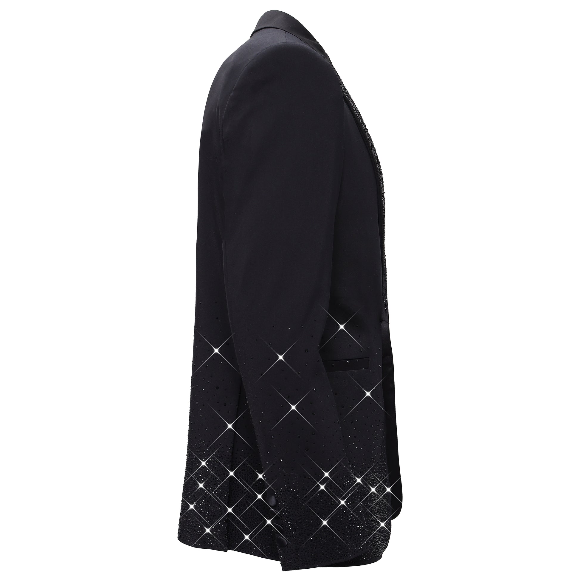 Step into the spotlight with the Elite Ensemble Blazer, a show-stopping piece designed for those who command attention. Adorned with shimmering crystals and intricate embellishments along the peak lapel, this blazer delivers an unmistakable "bling" factor perfect for red carpet events, runway shows, and high-profile performances. Crafted for singers and artists who demand both style and comfort, the SB436 features stretch fabric for ease of movement, ensuring you stay comfortable while making a bold statement. Whether on stage or at a premiere, this blazer sets the stage for unforgettable moments.