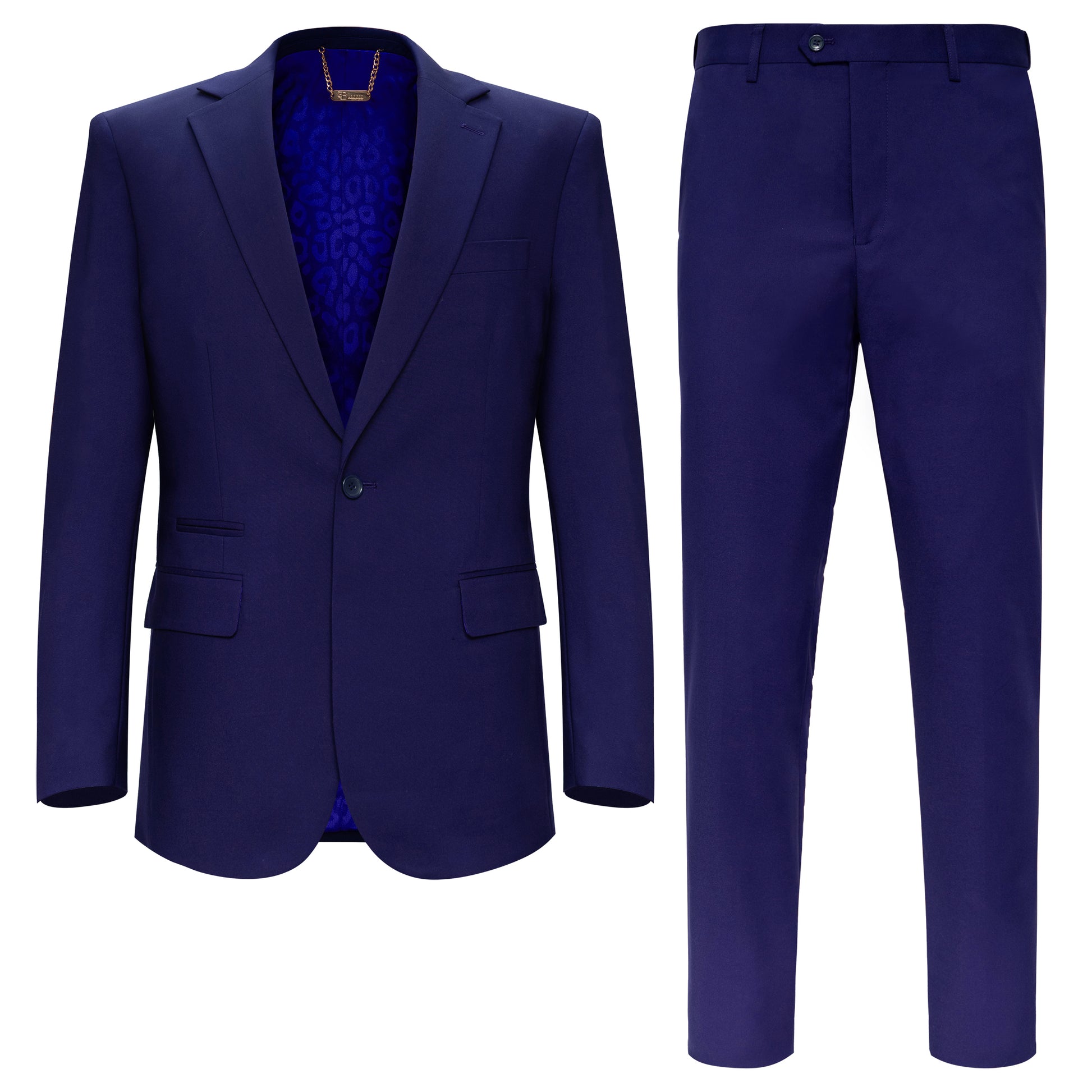 Introducing the Signature Suit Blazer and Dress Pant Set—where power meets precision. Tailored for the modern man, this two-piece set delivers an exceptional blend of style, comfort, and functionality. The blazer, designed with a sharp single-button closure, is lined with luxurious fine satin and features a bold cheetah print interior, adding a touch of fierce sophistication. The slim-fit blazer offers unrestricted movement with its stretch fabric, ensuring a sleek silhouette without compromising comfort. Paired with perfectly tailored dress pants featuring a stretch waistband and fabric, this set guarantees a custom fit that adapts to your form. From boardroom meetings to formal evening events, the SU500 set exudes confidence and masculine refinement, making it the go-to choice for business and beyond.
