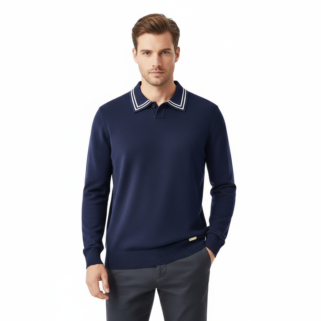 3. Monarch Tipped Collar Knit Polo LS-NAVY