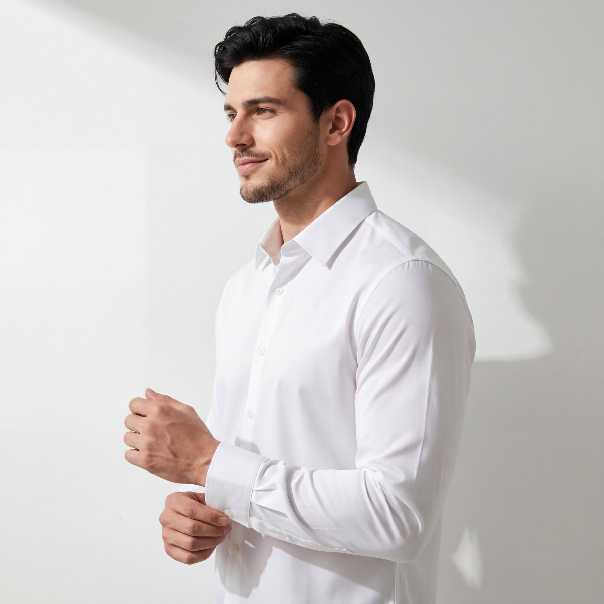SIGNITURE SATIN STITCHLESS LS Shirt-WHITE