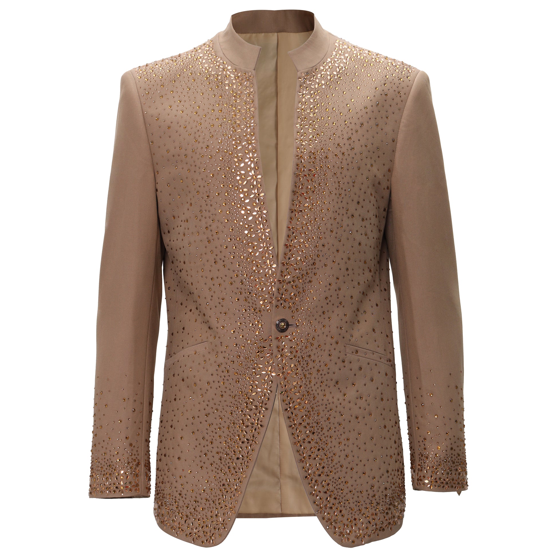 “Shine on every stage with the Bright Lights Suit, a masterpiece designed for those who crave the spotlight. Fully embellished with shimmering rhinestones, this suit dazzles with bling that commands attention on the red carpet, runway, or any event that requires a bold statement. The sleek mandarin collar adds a modern edge, while the stretch fabric ensures maximum comfort, making it perfect for singers, artists, and performers. Whether you’re stepping out for a premiere or taking center stage, the SB409 wraps you in luxury and style, offering the perfect blend of performance-ready ease and undeniable glamour.”