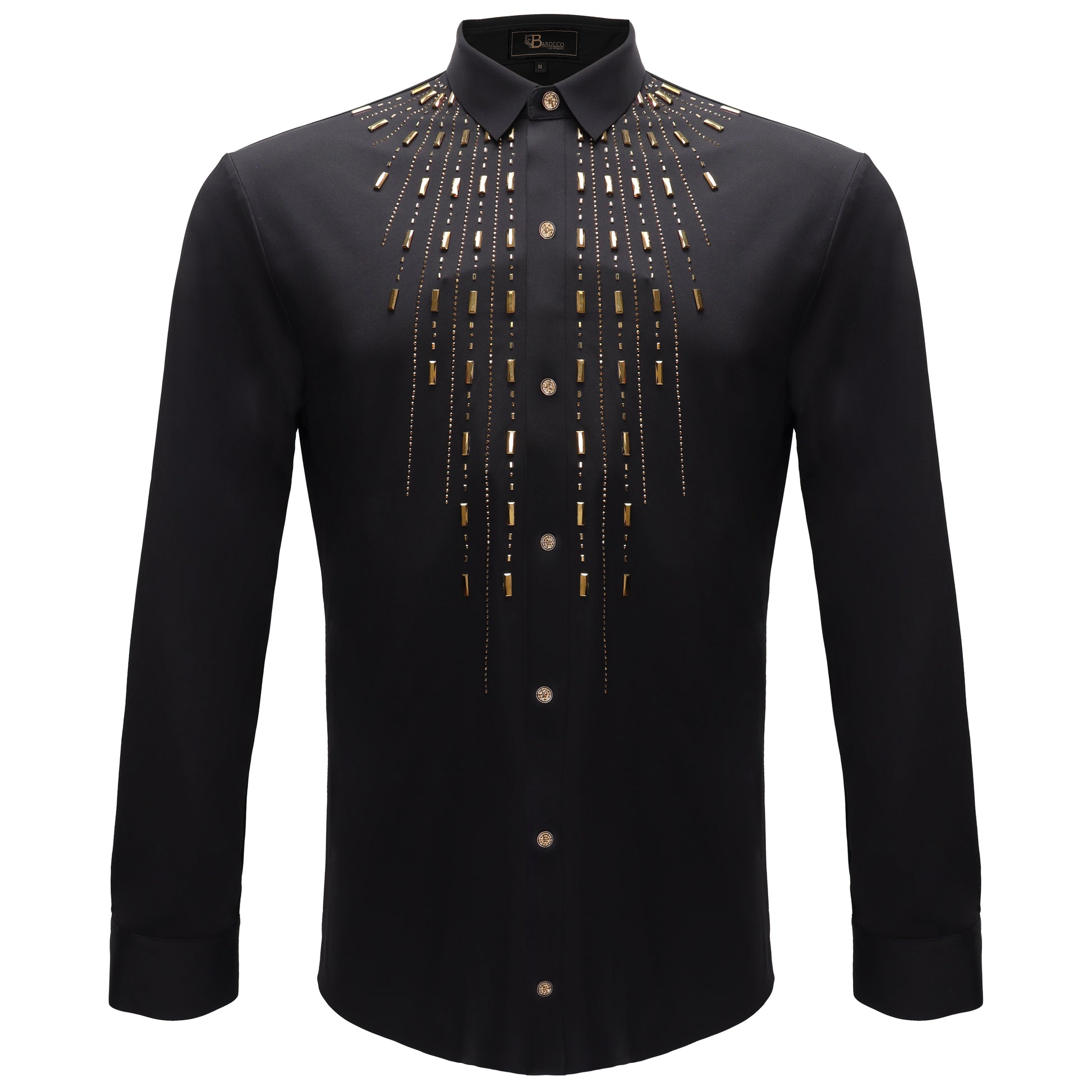 The Crystal Flex button-up shirt, meticulously crafted for the modern man who values both style and comfort. This high-quality shirt features an innovative 4-way stretch fabric, allowing for unrestricted movement and a tailored fit that compliments your physique. Designed with attention to detail, the Crystal Flex showcases exquisite handwork and unique stitchless technology, ensuring a sleek, polished look without the bulk of traditional seams. Adorned with subtle yet striking crystals, this shirt adds a touch of sophistication, making it perfect for both formal occasions and upscale casual outings. Whether paired with tailored trousers or your favorite jeans, the Crystal Flex button-up shirt is a versatile essential that embodies elegance and strength. Make a statement in every setting with this outstanding addition to your menswear collection.