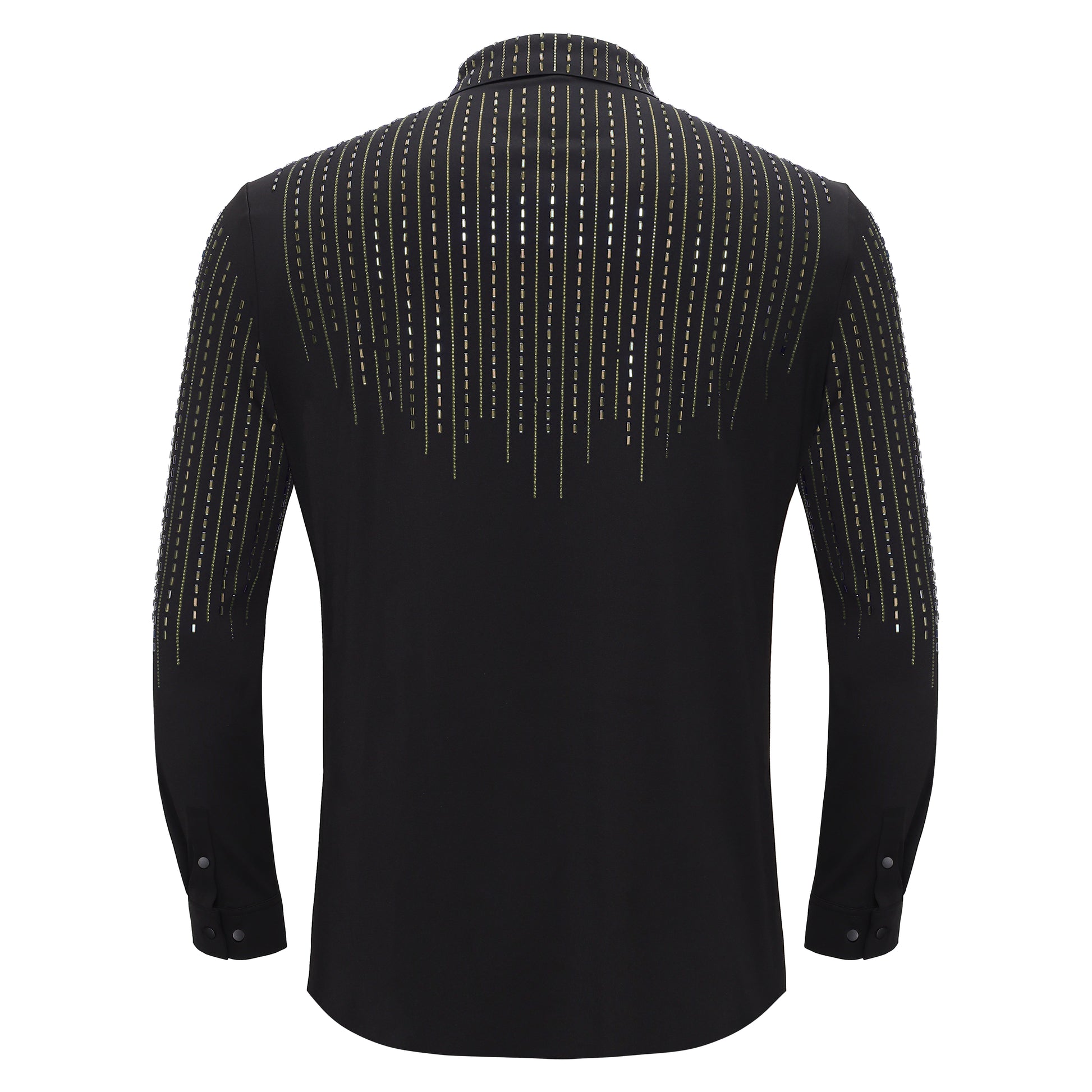 2. Crystal Classic Button-Up Shirt-BLACK/GOLD