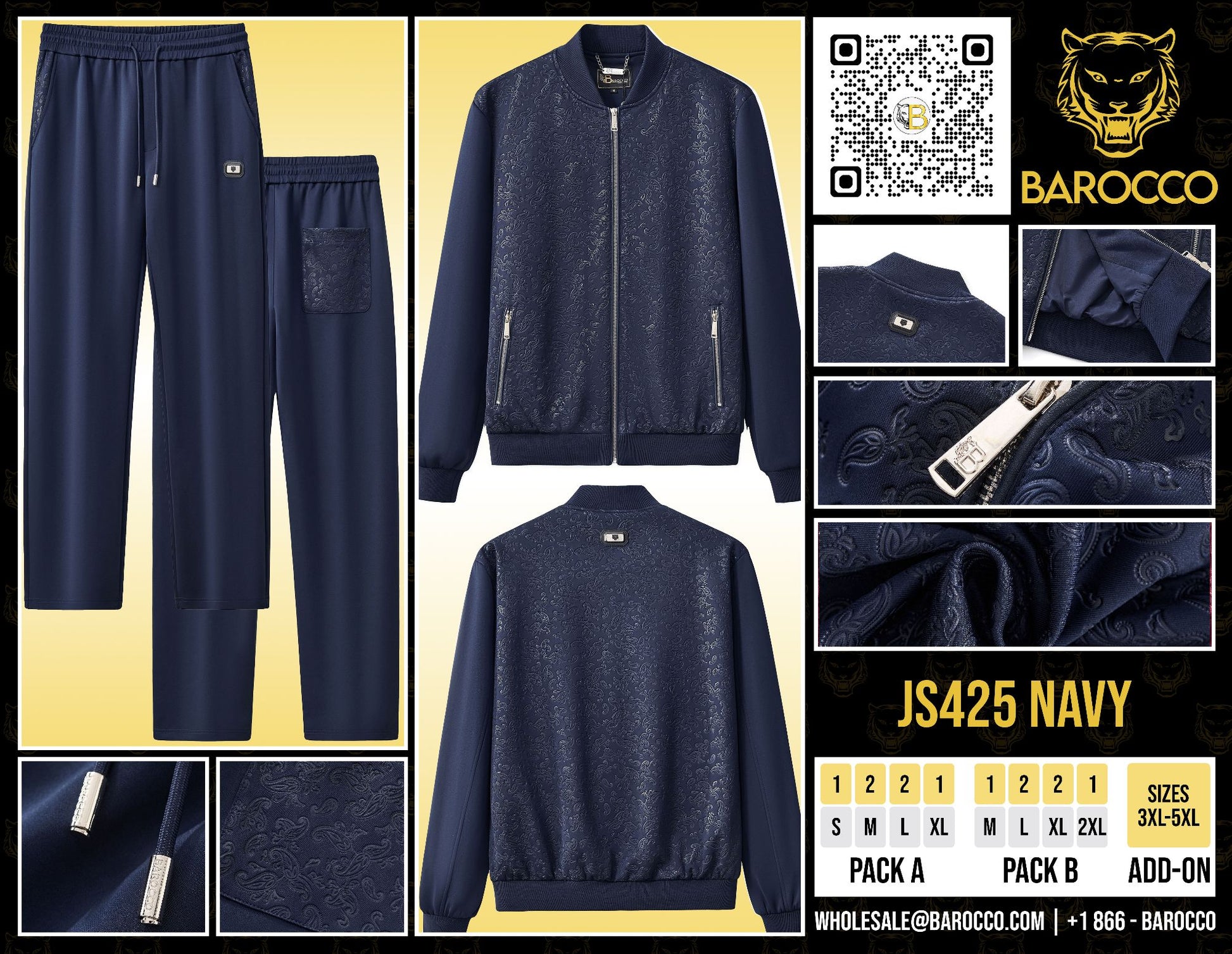 The Regalia Emboss Tracksuit delivers a bold, elevated look through its intricately embossed front paneling paired with a smooth, luxe performance body. The jacket’s refined texture contrasts with the clean lines of the matching pant, creating a cohesive set that stands out without being loud. Polished hardware, tailored rib trims, and subtle emblem placement complete the signature Barocco touch. Designed for upscale casual wear, night outings, and modern lifestyle versatility.