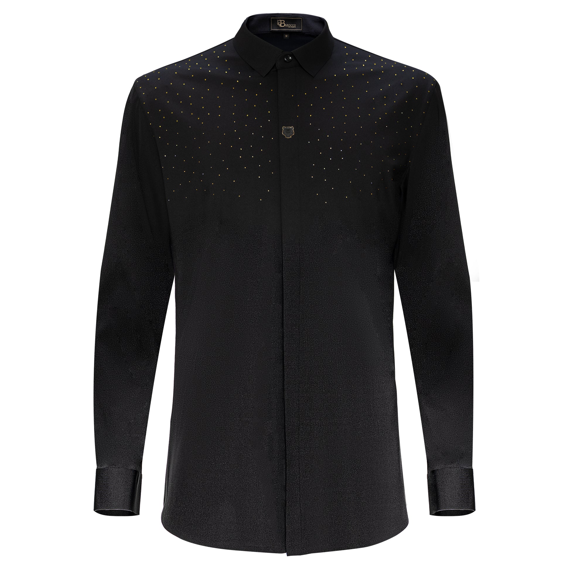 Introducing the 'Thrill Seeker' Button-Up Shirt—where modern masculinity meets adventurous style. This shirt is engineered for the bold, featuring superior stretch and extra comfort that empowers you to move with confidence. Crafted with cutting-edge stitchless technology, it delivers a refined look while eliminating discomfort from seams. With breathable fabric and 4-way stretch, the 'Thrill Seeker' adapts seamlessly to your body, ensuring you stay comfortable whether you're exploring the city or attending a night out. The eye-catching rhinestone details on the chest bring an element of glam, making sure all eyes are on you. Adorned with the Barocco signature tiger, this shirt exudes power and charisma—ideal for the man who embraces thrill and excitement at every turn. Make the 'Thrill Seeker' your go-to piece for a striking, confident presence.